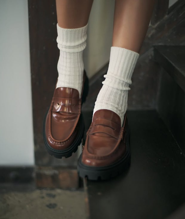 ローファー[ヒール4㎝]¥102,300(トッズ フォー ロンハーマン/ロンハーマン)、ソックス¥880(靴下屋/タビオ)