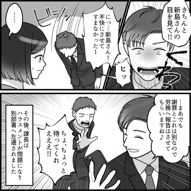 機転を利かせた同期のおかげで、見事セクハラ上司を撃退することができました。これからは最低上司に悩むことなく、仕事に励んでくださいね!