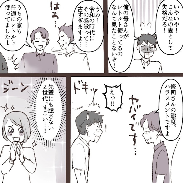 妻にひどい言葉を投げかける修司に対して、ビシッと強く言ってくれた頼もしい後輩たち。レトルト食品は、時間がない時でもおいしいものが用意できる優れもの。使えるものは上手く使っていって、皆さんも家事の負担を減らしてくださいね!