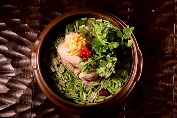 爽やかな香りのミナリを合わせ「ミナリ薬膳参鶏湯」6,380円(税込)、