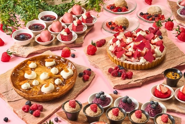 2種のフレッシュいちごをブッフェスタイルで提供し、いちご本来の風味・酸味・甘みをダイレクトに味わえるほか、ベリーを使ったスイーツも充実。
