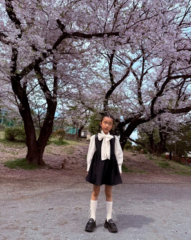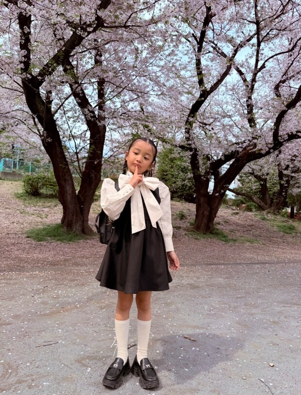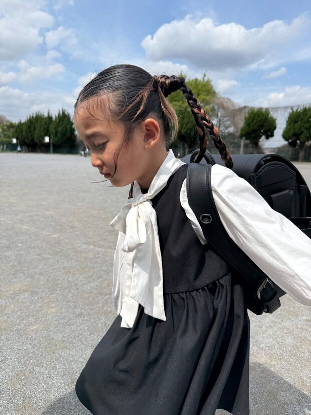 入学式の日は本人の要望も取り入れつつ(笑)、リボンタイブラウス、ワンピースにしました