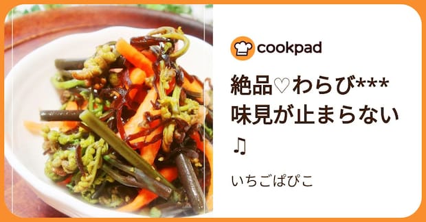 わらびと斜め千切りの人参、塩昆布をビニール袋に入れて揉むだけ。材料3つで作れる手軽な一品です。食べてすぐ美味しく、30分ほど袋のまま置くとさらに味がなじんでおいしくなります。塩昆布のうまみがわらびによく合い、箸が止まらなくなる味わいです。