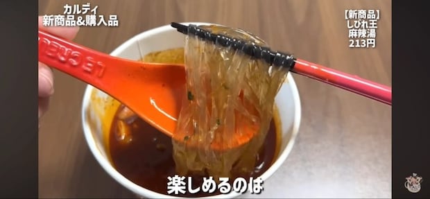 「麻辣湯大好き!」というみぃさんも、探し回ってやっと見つけたカップ麺だそう。中には、さつまいもで作られた極太のもちもち麺が入っています。