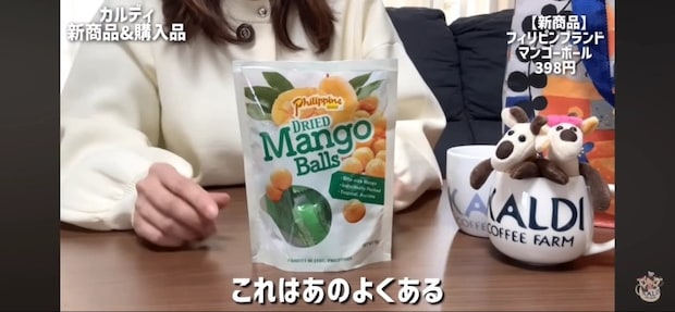 もともとカルディで販売しているドライマンゴーが、丸いひと口サイズになった新商品!