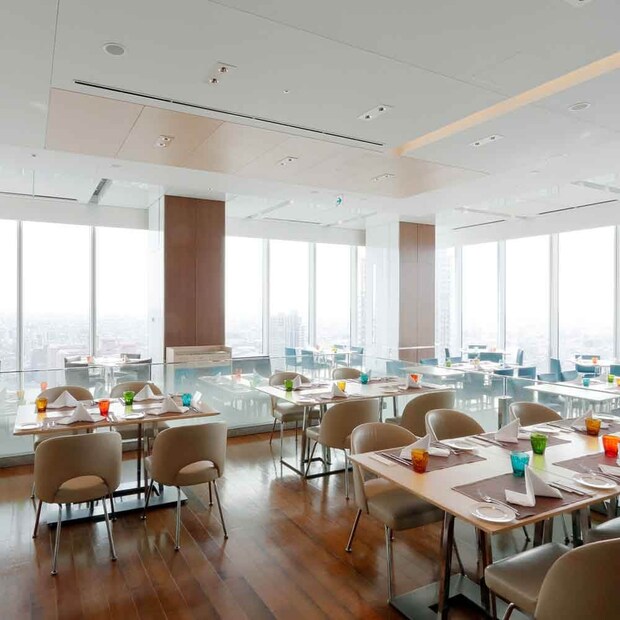 日本屈指の高さを誇る「あべのハルカス」の上層階に位置する「大阪マリオット都ホテル」内にある、子供から大人まで幅広く多彩なニーズに沿うビュッフェスタイルのレストラン。シェフが目の前で仕上げるできたてのメニューに、各テーブルをまわるワゴンサービスなど、充実したビュッフェでワクワクなひとときを。