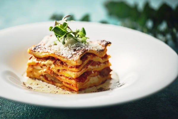 また、丁寧に重ねて焼き上げたラザニアは、自家製パスタに牛肉と豚肉のボロネーゼソース、ナツメグを効かせたベシャメルソースを重ねた全7層の構成。ミートソースとベシャメルが織りなす奥行きある味わいと、香ばしく焼き上げた表面が特徴だ。どこか懐かしさを感じさせる、温かみのあるクラシックな一品に仕上げている。