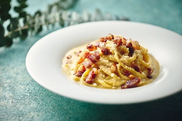 まず、Gallery 11のシグネチャーのひとつであるカルボナーラ。オーガニック卵の卵黄を贅沢に使用した自家製トンナレッリは、もちもちとした食感が特徴だ。クリームを使わず、卵白をメレンゲ状に仕立てることで、軽やかでなめらかな口当たりに仕上げた。パンチェッタとチーズのコクが重なり、素材本来の旨味を引き立てる。卵白まで余すことなく活用し、美味しさとサステナビリティを両立した一皿だ。