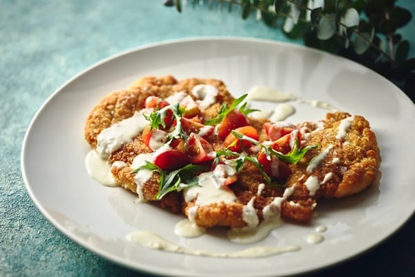 ジューシーな旨味が特徴の豚肉を使用したポークカツレツ・アッラ・ミラネーゼは、香ばしく揚げ焼きにすることで外は軽やかに、中はしっとりとした食感に仕上げている。チェリートマトのサラダとパルミジャーノチーズのフォンデュを添え、コクと爽やかさのバランスが取れた、満足感のある味わいに仕上げている。
