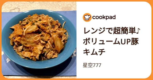 耐熱ボウルにもやし、ねぎ、豚肉、キムチを順に入れてレンジ加熱。キムチの辛みとうまみが豚肉にからんで、食欲をソソります。もやしたっぷりで、これ一品で満腹になりそう。