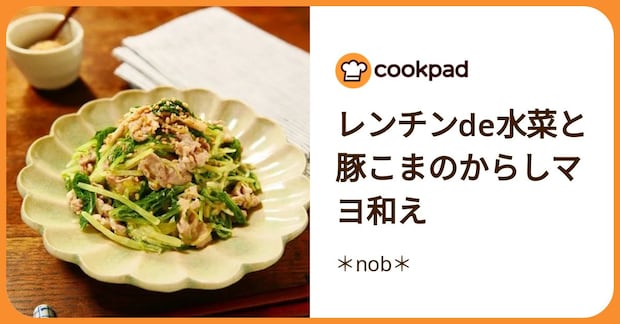 ▼ピリッとコク旨「水菜と豚こまのからしマヨあえ」レンジ加熱した豚こまと水菜に調味料を加えてサッとあえるだけ。からしの辛みをマヨネーズがマイルドにしてくれるおかげで、あと引くおいしさに。