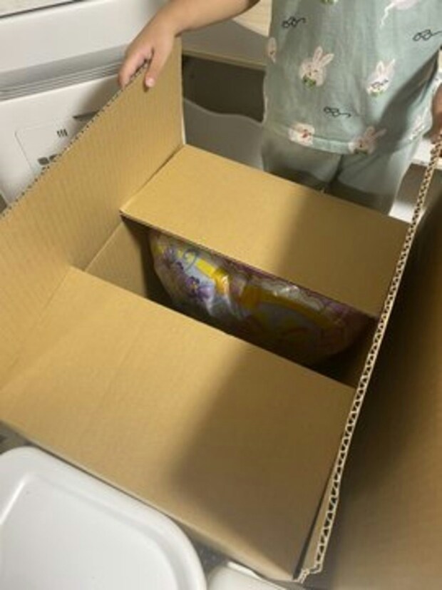 アーノルズはせがわさんは、引越しの準備で大忙し。そんな中、娘さんがものすごく贅沢な段ボール箱の使い方をしていたので思わず写真を撮ってしまいます。それがこちらです。