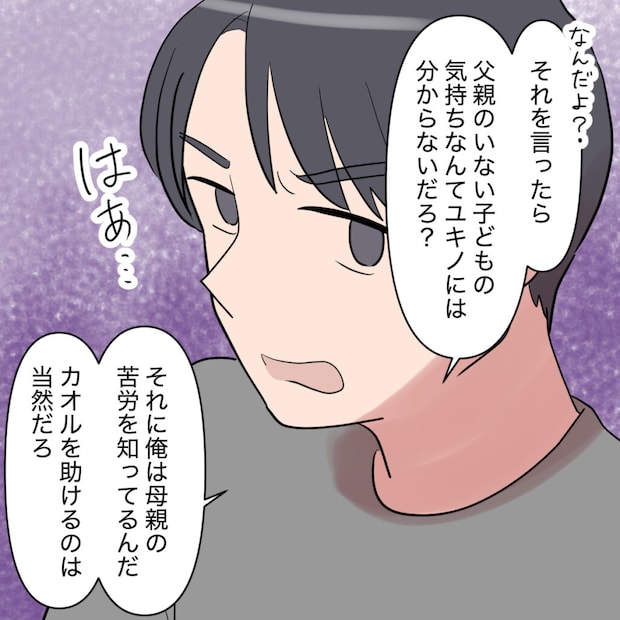 するとシンジは呆れたようにため息をついて「それを言ったら、父親のいない子どもの気持ちなんてユキノには分からないだろ?それに俺は母親の苦労を知ってるんだ、カオルを助けるのは当然だろ」と突き放すように言いました。