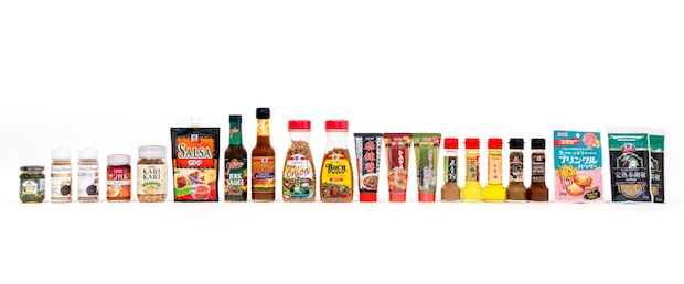 調味料は、約700種類の調味料を展開するユウキ食品の商品の中から、22種類をセレクト。なじみのある日本の調味料はもちろん、韓国、台湾、インドネシア、イタリア、メキシコ、ジャマイカなどさまざまな国の調味料をかけて味わい、おいしさを発見します。