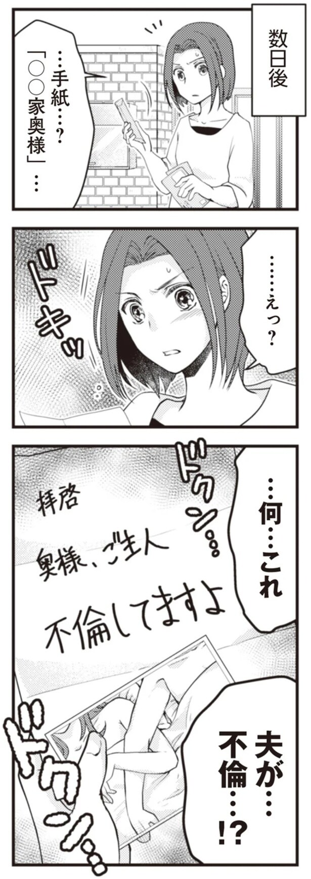 大人気電子書籍『サレ妻になり今は浮気探偵やってます』シリーズから、「拝啓、奥様 ご主人不倫してますよ」 (漫画:蒼衣ユノ、コマ)を全13回連載でお届け。今回は第1回となる。