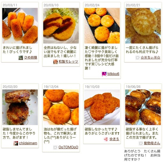 「破裂しなかったです」「少ない油でもすごく綺麗に出来ました!」「ありがとう、助かった!」など、つくれぽ(つくりましたフォトレポートのこと)でも成功報告が届いています。