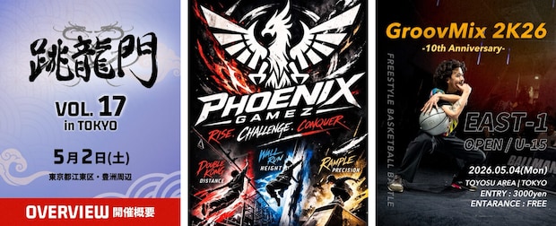 ダブルダッチ大会 | 跳龍門パルクール大会 | PHOENIXフリースタイルバスケ大会 | GroovMixフリースタイルフット大会 | JFFCミックスバトル | FREESTYLE SPACE