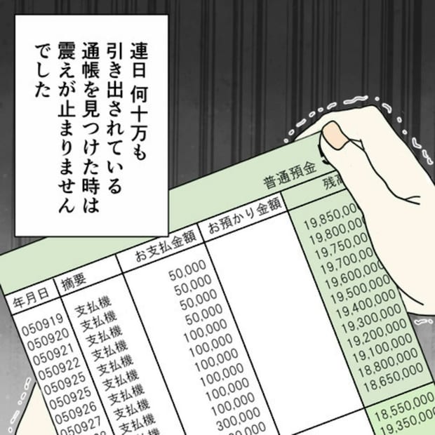 夫が、金銭管理をしていたのには理由があり、そうしなければ、大変なことになるからだったのですね…。そもそも、夫が人材派遣会社にたのんで計画したこと…というのがおどろきですよね。
