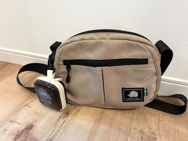 なので、中身が傷つかない、そしてカラビナがついているのでバッグ等に付けられる!