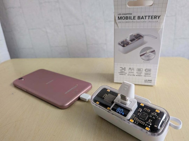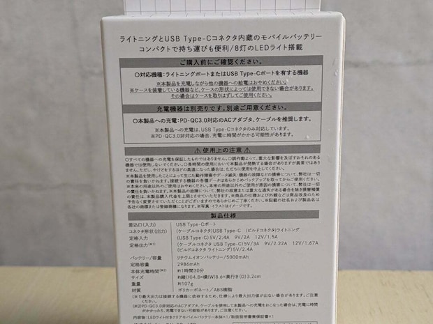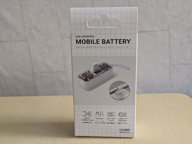 こちらが今回スリーコインズで購入した「LEDライト付きクリアモバイルバッテリーライトニング」で、価格は2,200円。