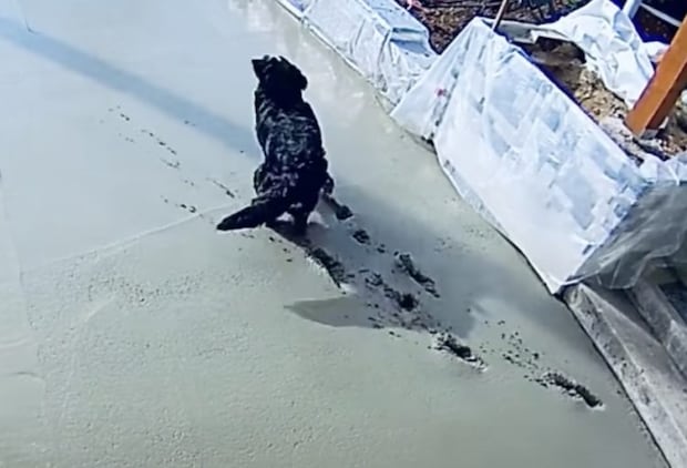 こちらのお宅では、庭にコンクリートを敷き詰めた直後に