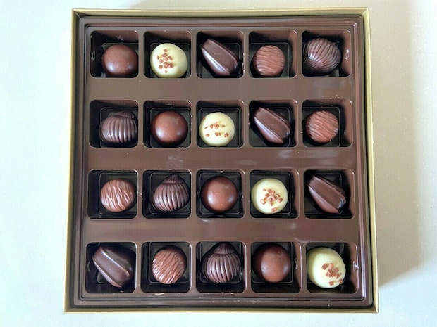 ベルギーの老舗ブランドが伝統のレシピで作ったチョコレートアソートで、フタを開けると5種類のチョコが4個ずつ、合計20個も綺麗に並んでいます♪