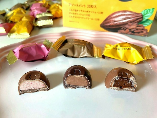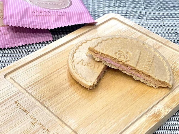 3つ目のストロベリーチョコは、チョコの甘さが強めで、いちごのフルーティーな酸味はほんのり感じる程度。間から見える鮮やかなピンク色が、おやつタイムをちょっぴり楽しくしてくれます♪