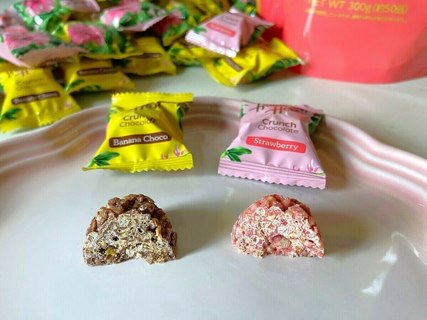 イエローのパッケージに入った「バナナクランチチョコ」がコストコ限定のフレーバーです。もう1つのピンクのパッケージは「ストロベリークランチ」で、筆者が購入したパックには合計47個が入っていました。