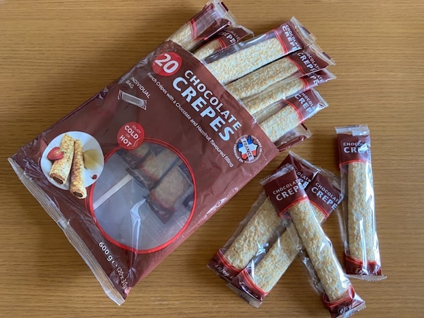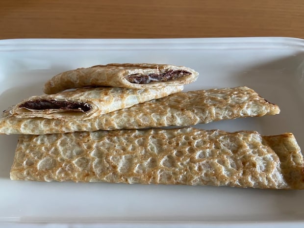 とっても薄いクレープ生地の中には、ヘーゼルナッツ風味のチョコレートが包まれています。