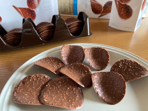 人気の理由となっているポテトチップスのような薄い形状ですが、実際にはミルクチョコレートにライスクリスプを混ぜ合わせて作られています。