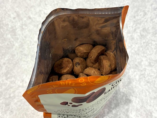 袋にはチャックが付いており、密閉できる設計が利点です。別途保存袋に移す手間がなく、自身のペースで食べ進めることができます。