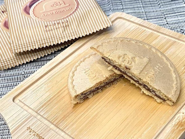表面はゴーフレット生地で、赤い帽子のロゴと「AKAI BOHSHI」の文字が刻印されています。見た目からして軽やかな食感が楽しそうでとっても美味しそう!
