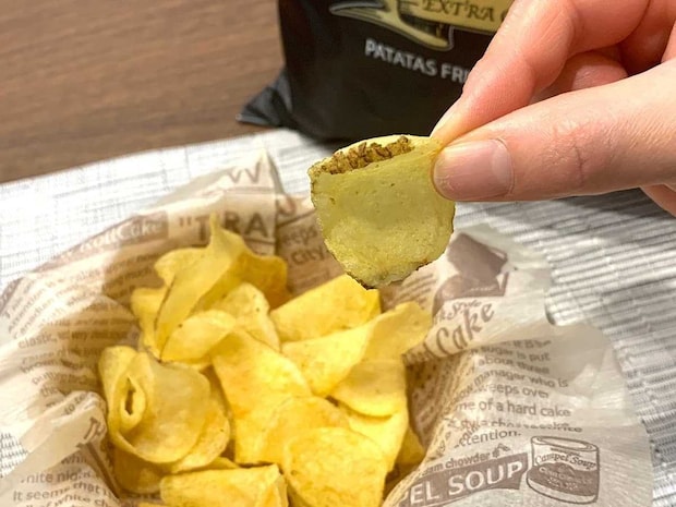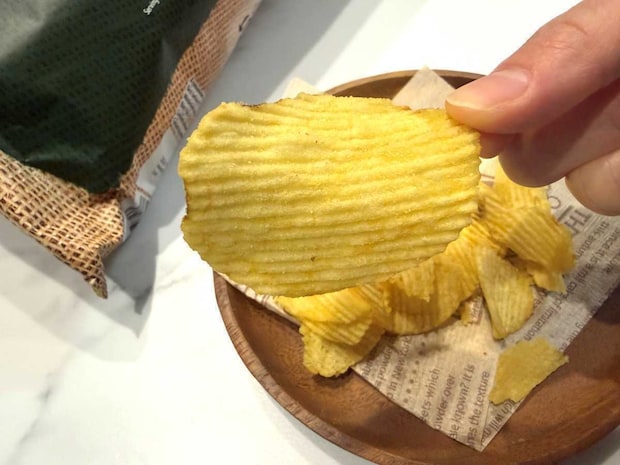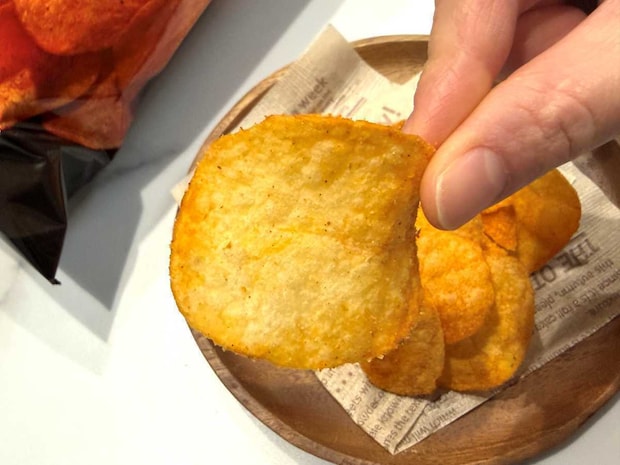 しっかりとしたサイズ感のあるチップスですが、実際に食べてみると見た目からは想像できないほど軽やかな食感です。野菜ブイヨンのような風味の後に、じゃがいもの甘味がじわりと追いかけてきます。