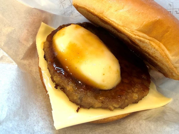 バンズにテリヤキソース・半熟風たまご・ハンバーガーパティ・チーズ・カロリーハーフマヨネーズを挟んだ一品。ソースにはテリヤキとマヨネーズ、具材には半熟風たまご・ハンバーガー・チーズと、具材を見るだけでも美味しいと確信できる組み合わせですよね!