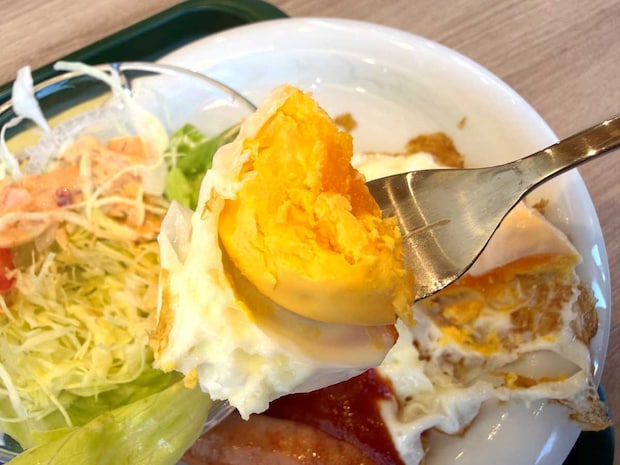 目玉焼きはしっかり火が通っており、余計な味付けもなくシンプルな仕上がり。特に派手さはありませんが、朝食の定番らしく素材本来のやさしい味わいを楽しめます。