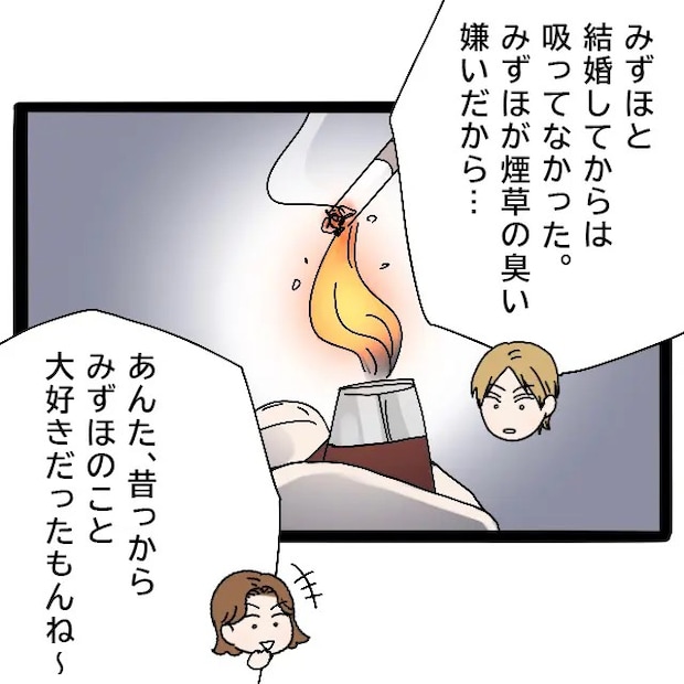 兄は「みずほと結婚してからは吸ってなかった。みずほ煙草の臭い嫌いだから・・・」とぼそりと話した兄に「あんた、昔っからみずほのこ大好きだったもんね~」とよっちゃんは朗らかに笑って言いました。