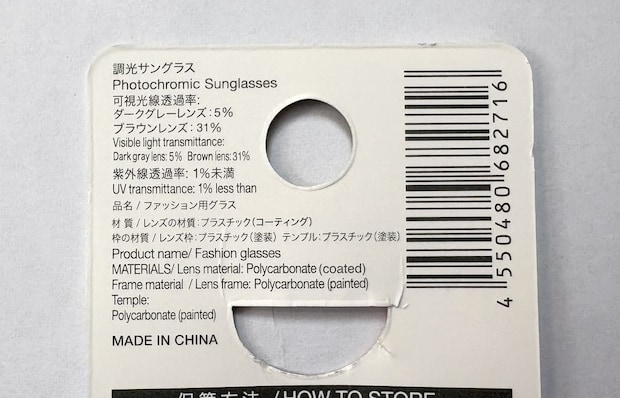 調光サングラス(屋外で色が変わるサングラス)