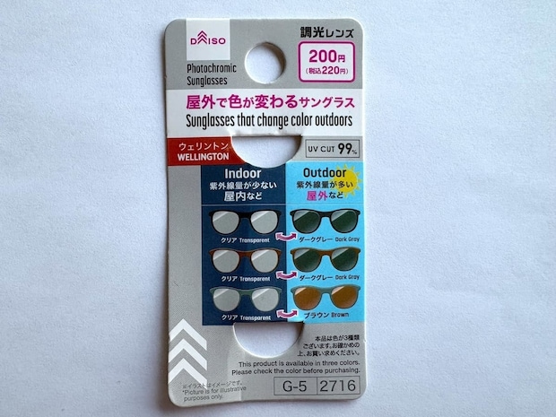 購入したのは本体カラーがブラウンなので、画像の真ん中にあるダークグレーに変化するレンズです。