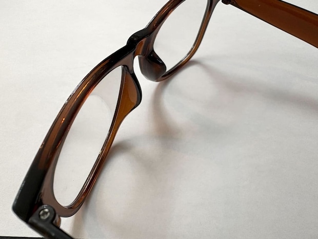 耳にかけ、メガネを支える部分が真ん中で折れるようになっています。