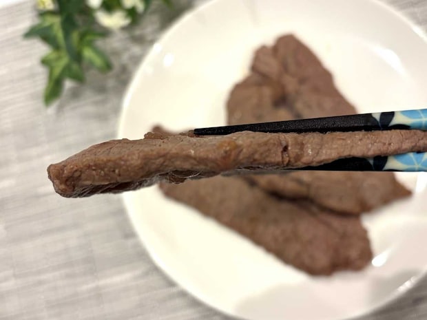 ほど良く厚みのあるお肉ですが、繊維がほぐれるような柔らかさで食べやすい!少し時間が経ったお肉でも、硬くならずスッと噛み切れました♪