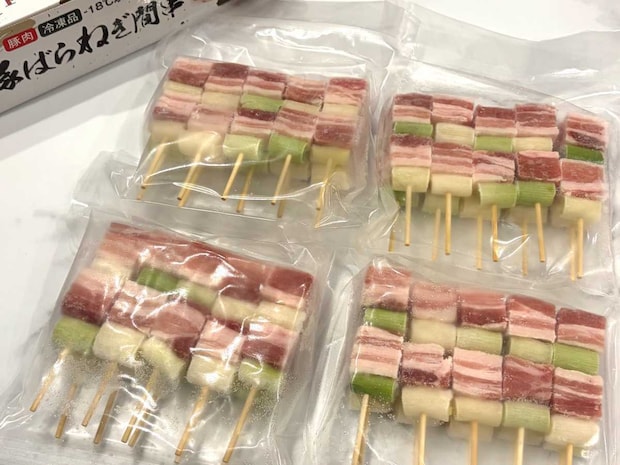 豚ばら肉とねぎが交互に刺さった本格派の串焼き。冷凍の豚ばらねぎ間串が計40本入って、価格は2,498円(税込)となっています。