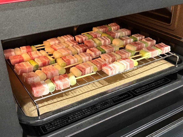 今回はフライパンではなく、ウォーターオーブンで豚ばらねぎ間串を焼き上げていきます。