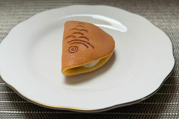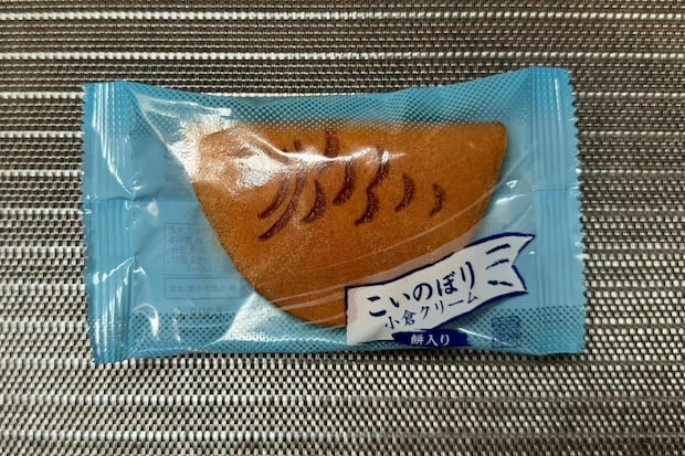 表面にはかわいいの鯉の絵柄の焼き印が押された、鯉のぼりイメージの和洋折衷どら焼きです♪