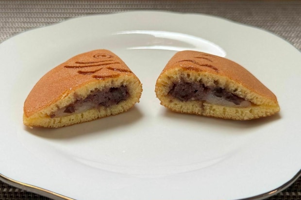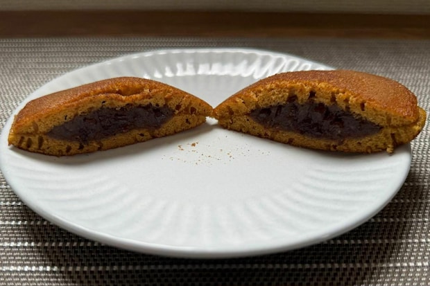 黒蜜とブラウンシュガーシロップが効いたどら焼き生地は、普通のどら焼きとは一味違った濃厚な味わいです。
