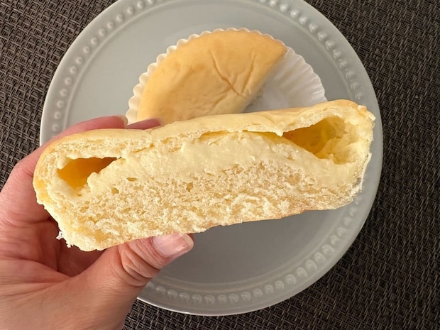 袋を開けると、ふんわりとしたパンの香りが広がります。パン生地はしっとり、もちっとしていて非常にやわらかく、手に持つだけでその感触が伝わってきます。