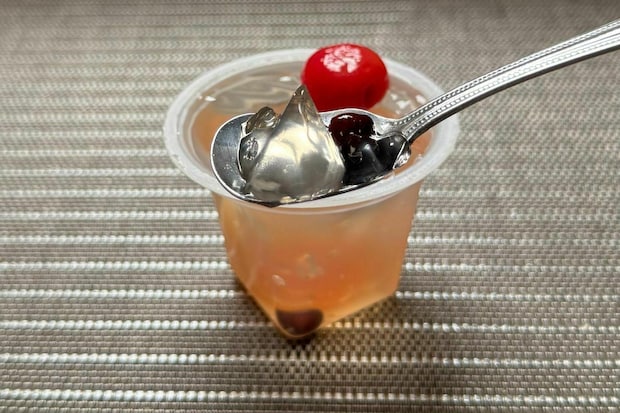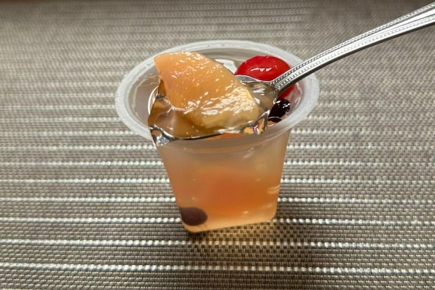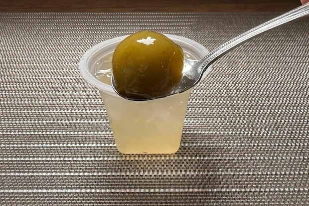 実際に食べてみると、梅ゼリーは柔らかめの食感で、ほんのり酸味の効いた味わい。