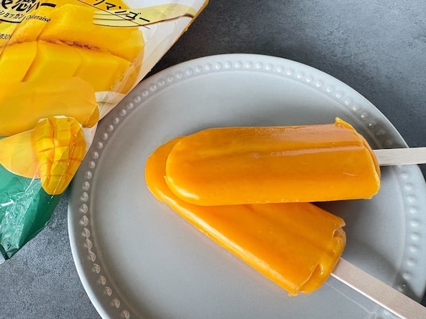 実際にパッケージから取り出すと、鮮やかなオレンジ色のアイスが現れます。1口食べると、その独特な「ねっとり感」に驚かされます。