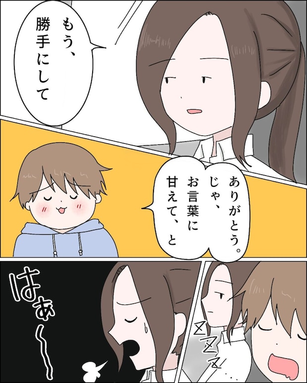 あまりの頼りなさに、私は思わず「もう、勝手にして」と冷たい言葉を投げかけました。レイは「ありがとう、じゃお言葉に甘えて」そう言って再び夢の中へ。その無神経な姿に、私はただ大きくため息をつくことしかできませんでした。