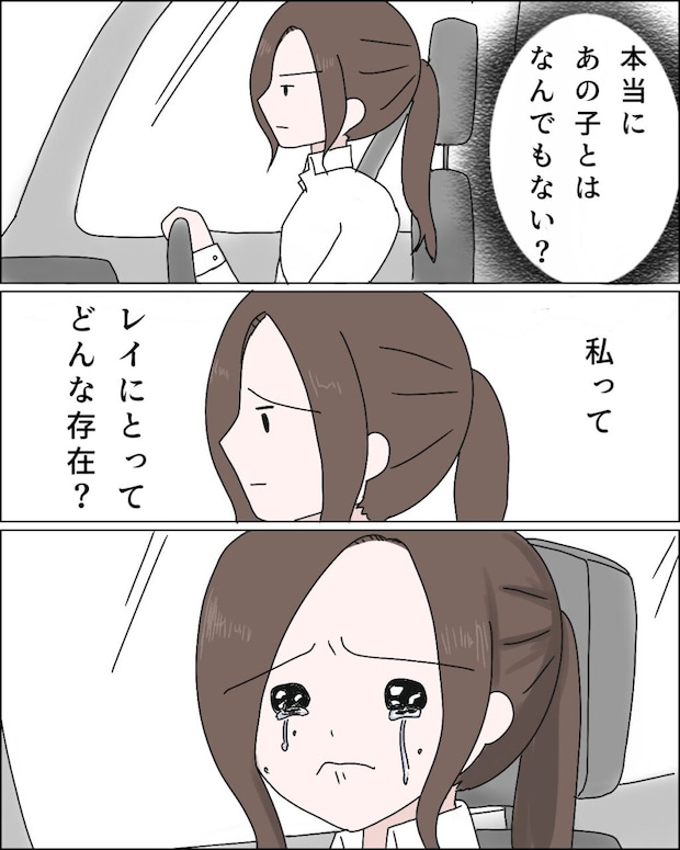 レイは「浮気はしていない」と言うけれど、私の車で2人きりで長距離ドライブをして、挙句の果てには温泉や観光まで楽しんで、何もなかったという方が不自然です。それでも、彼の言葉を信じたい自分がいるのも事実。私はレイにとって、いったいどんな存在なんだろう。そう考えたら苦しくて、気づけば涙がこぼれていました。
