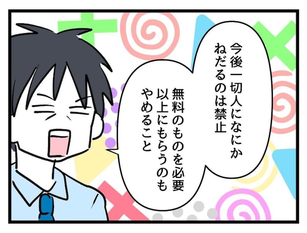 夫は人にものをねだったり無料のものをやたらともらうのをやめるようたまみに伝えました。これは基本的なことですね。